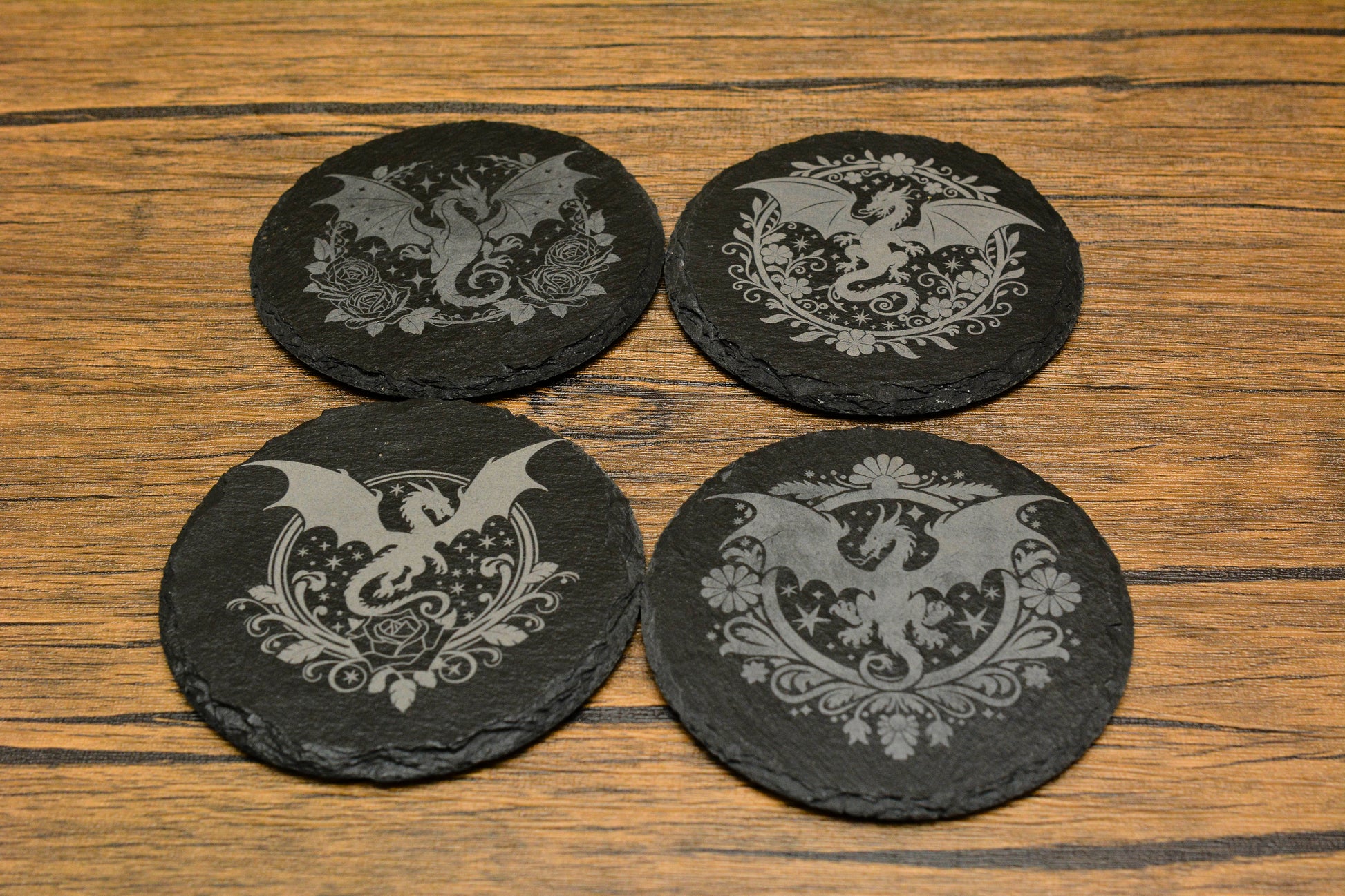 Perfect for gothic homes, fantasy lovers, or anyone who enjoys a touch of medieval charm — these engraved dragon coasters bring a whisper of ancient fire to your space.
