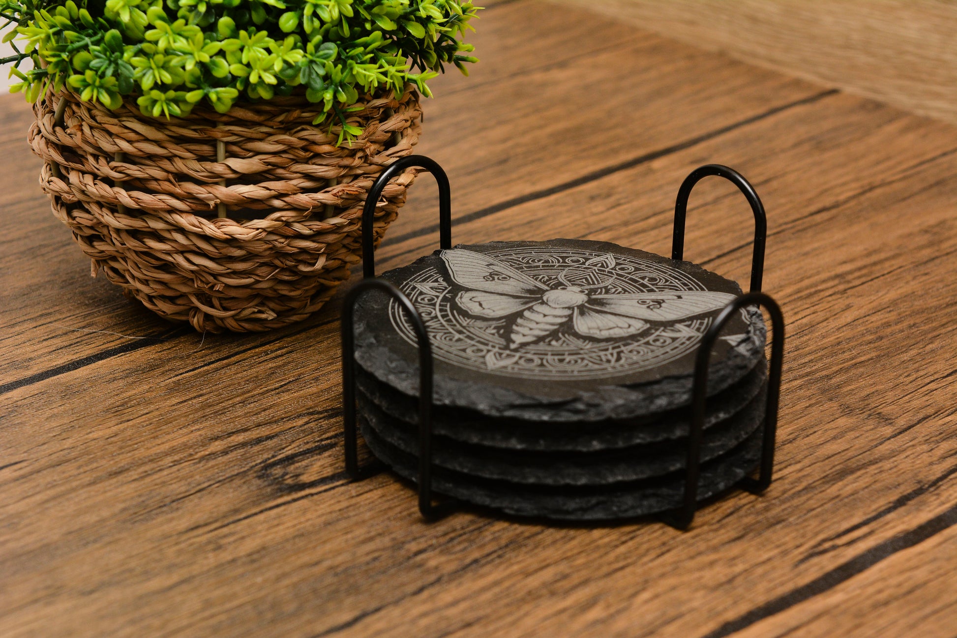 • 4 × Engraved Norse Mythology Slate Coasters