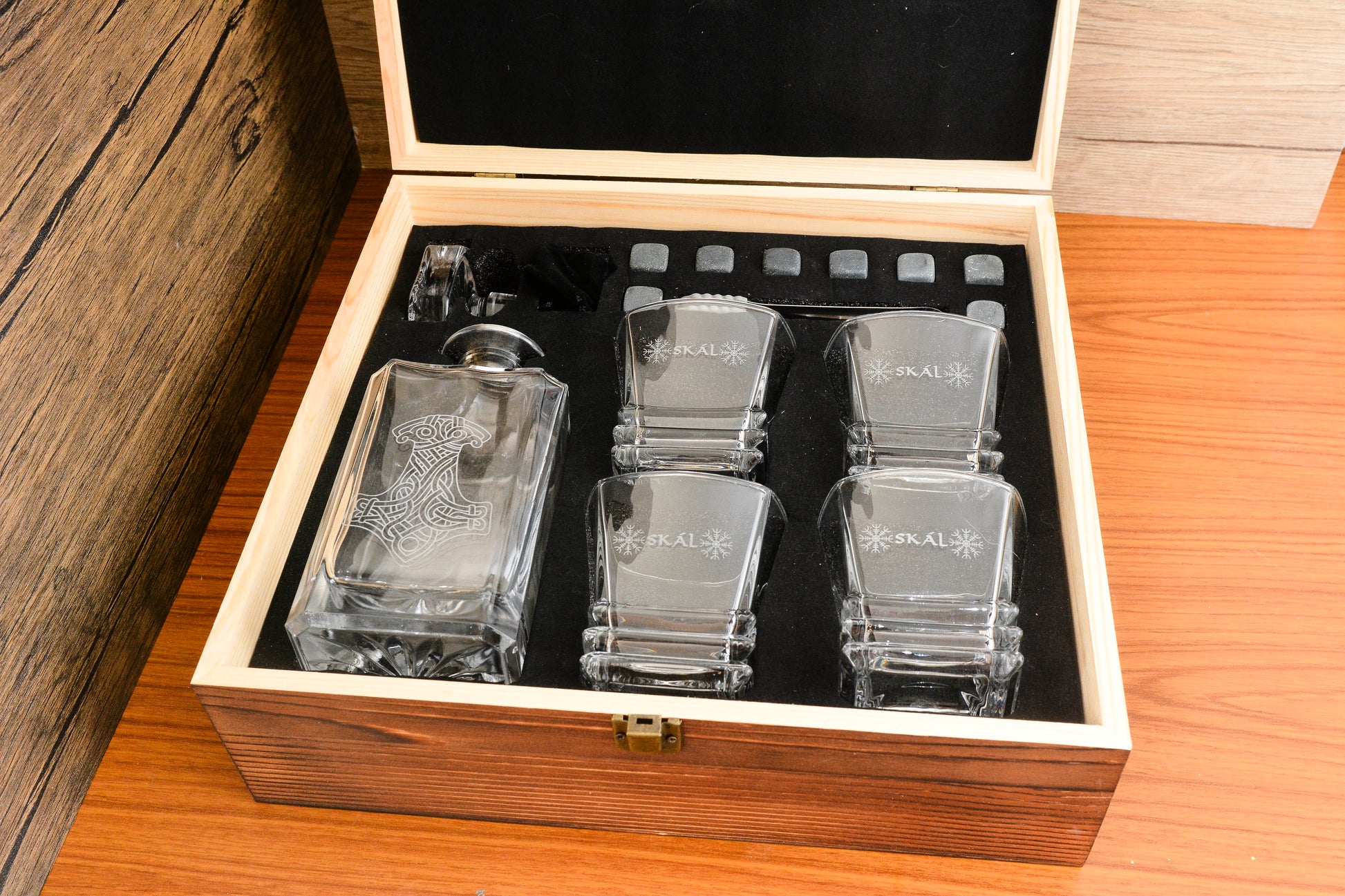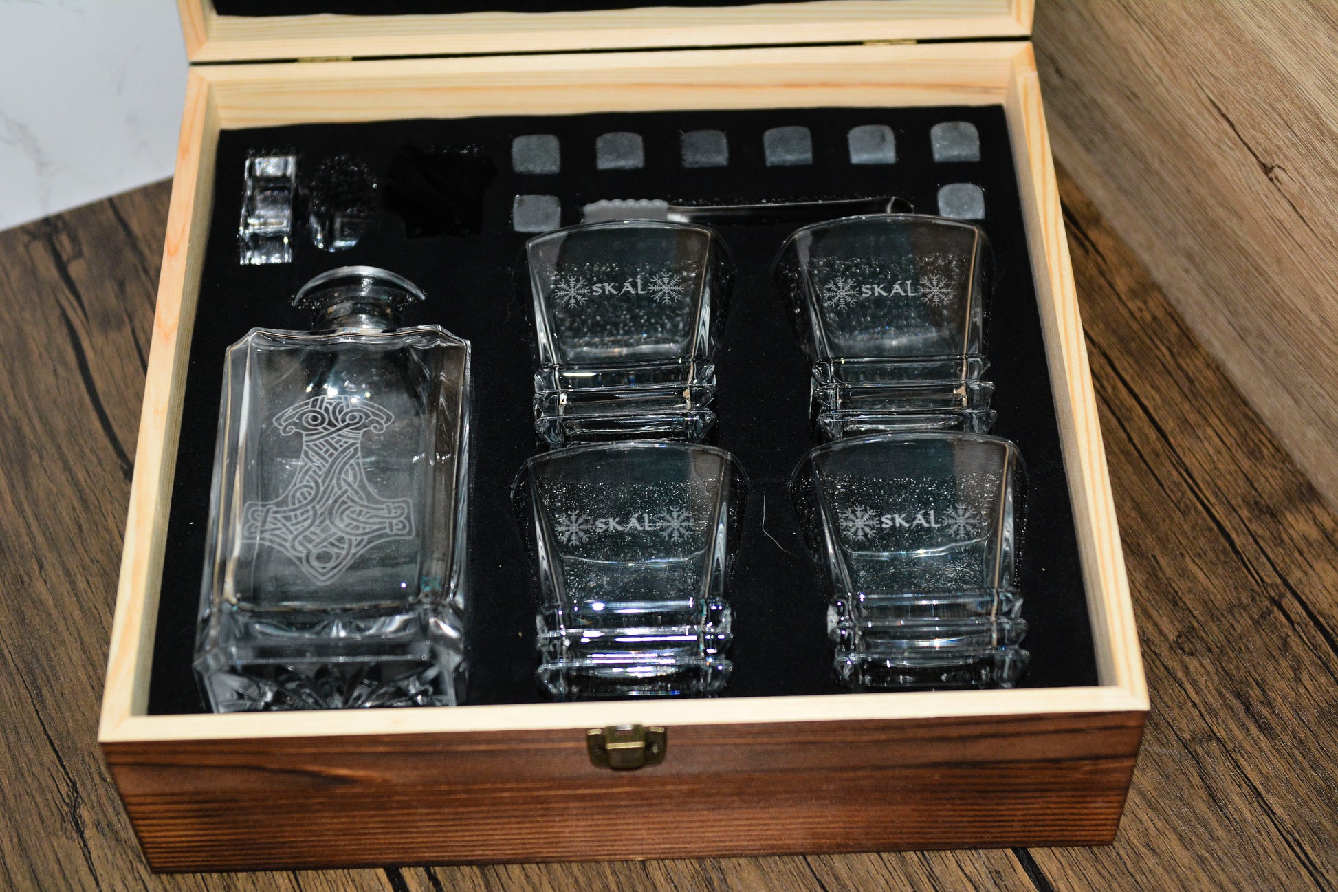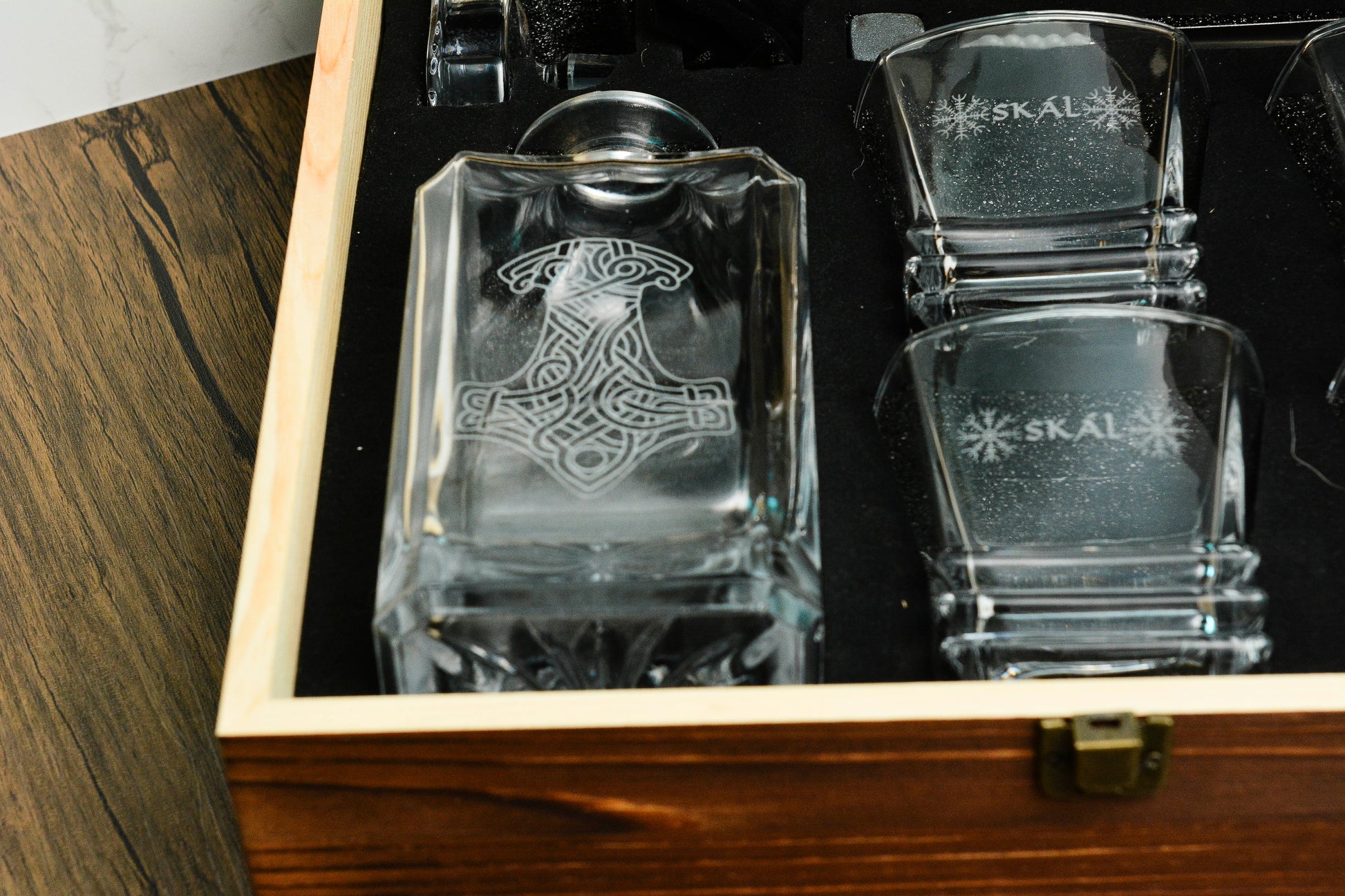 Norse Whisky Gift Set – Thor’s Hammer Decanter, 4 Engraved Glasses & Whisky Stones