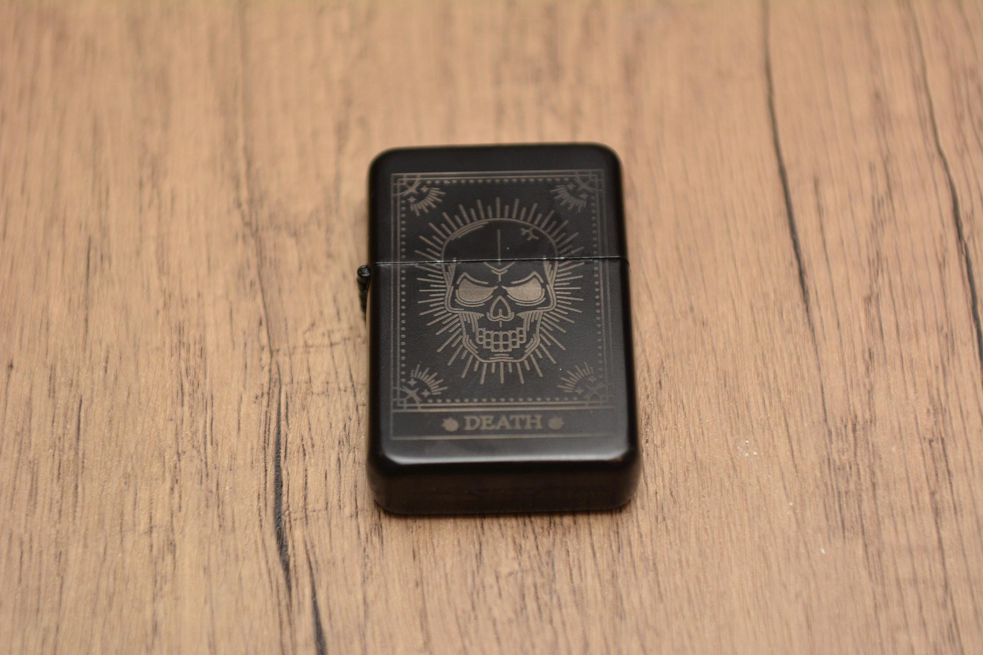 Crafted from stainless steel with a matte black finish, each lighter is deeply laser-engraved with your chosen design: The Lovers, Death, Magician, Justice, Butterfly, or The Crystal. Whether you're lighting candles on your altar or adding a gothic touch to your toolkit, this lighter combines bold design with everyday function.