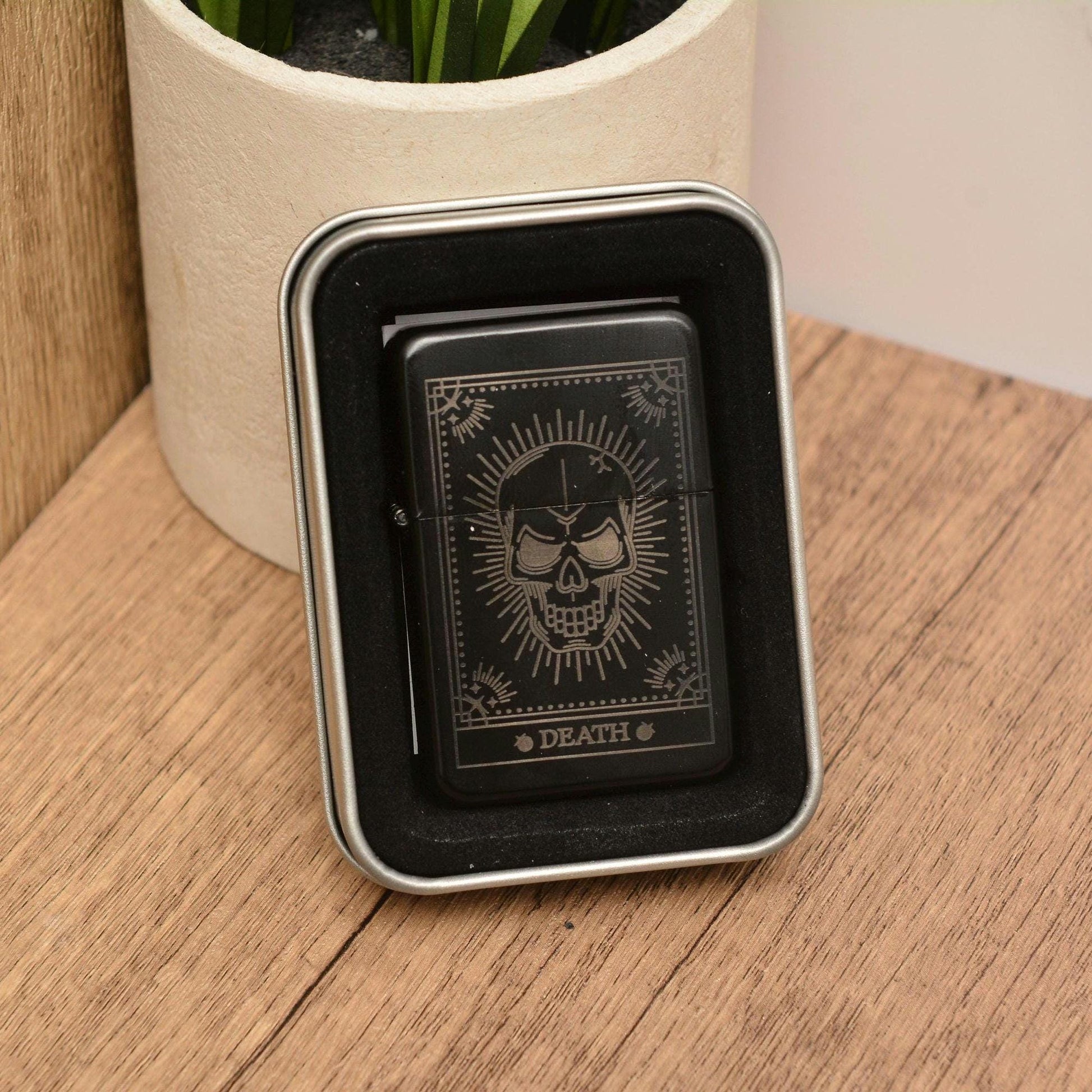 Tarot Card Engraved Lighter – Gothic Witchy Gift | Refillable Petrol Lighter in Gift Tin | The Lovers, Death, Magician & More